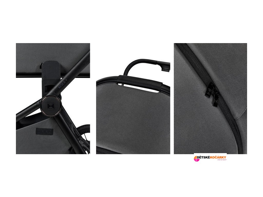 Kočárek MOON Resea+ je speciální řada v krásném designu. Vyniká především jednoduchým a rychlým skládáním včetně sportovního sedáku po i proti směru jízdy, maximálním odpružením díky velkým kolům, hlubokou vanou s ventilačním odepínacím okénkem. Kočárek je vyrobený z vysoce kvalitního extra silného textilního materiálu, který je prodyšný a vhodný pro alergiky. Textilní materiály jsou vodoodpudivé a odpuzují také nečistoty. Prošívané detaily z veganské kůže působí antibakteriálně, jsou protiskluzové a mají mimořádně kvalitní úpravu.