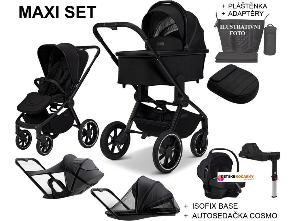 Varianta MAXI je set doplněný o autosedačku AVIONAUT Cosmo, základnu ISOFIX a adptéry, které Vám umožní usadit autosedačku na podvozek kočárku. Dalším doplňkem rozšiřující tento set je prostorný nánožník a pláštěnka vhodná na sportovní sedačku i hlubokou korbu.