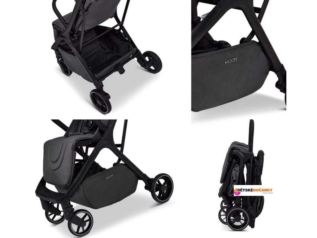 MOON Zoé je lehký a dobře skladný sportovní kočárek se zádovou opěrkou polohovatelnou až do úplného lehu. Je výborný na cestování, protože pomocí jednoho tlačítka se sám složí na minimální velikost a díky adaptéru na něj lze nasadit autosedačku.