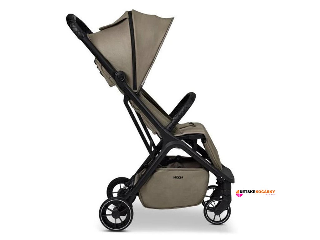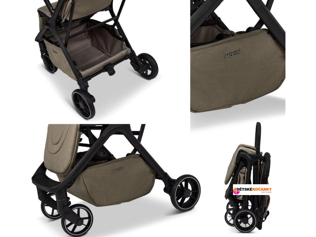 MOON Zoé je lehký a dobře skladný sportovní kočárek se zádovou opěrkou polohovatelnou až do úplného lehu. Je výborný na cestování, protože pomocí jednoho tlačítka se sám složí na minimální velikost a díky adaptéru na něj lze nasadit autosedačku.
