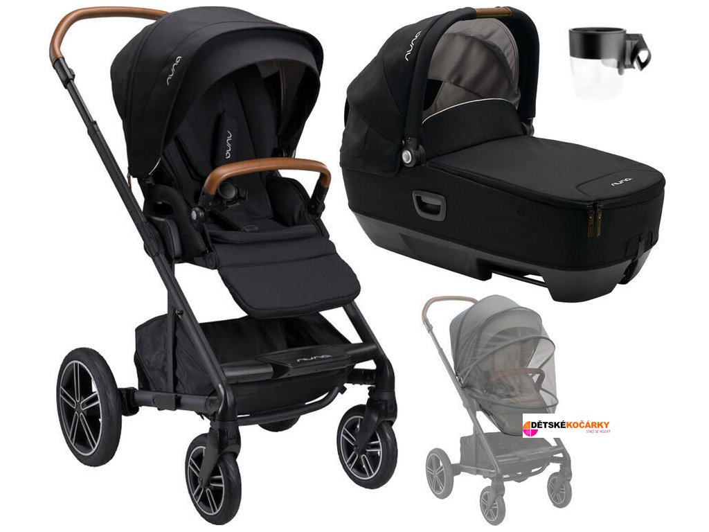 Set obsahuje: sportovní kočárek NUNA Mixx Next + nánožník + pláštěnku + nákupní košík + univerzální adaptéry + hlubokou korbu NUNA Cari Next + moskytiéru NUNA Stroller insect net + držák nápojů NUNA Cupholder
