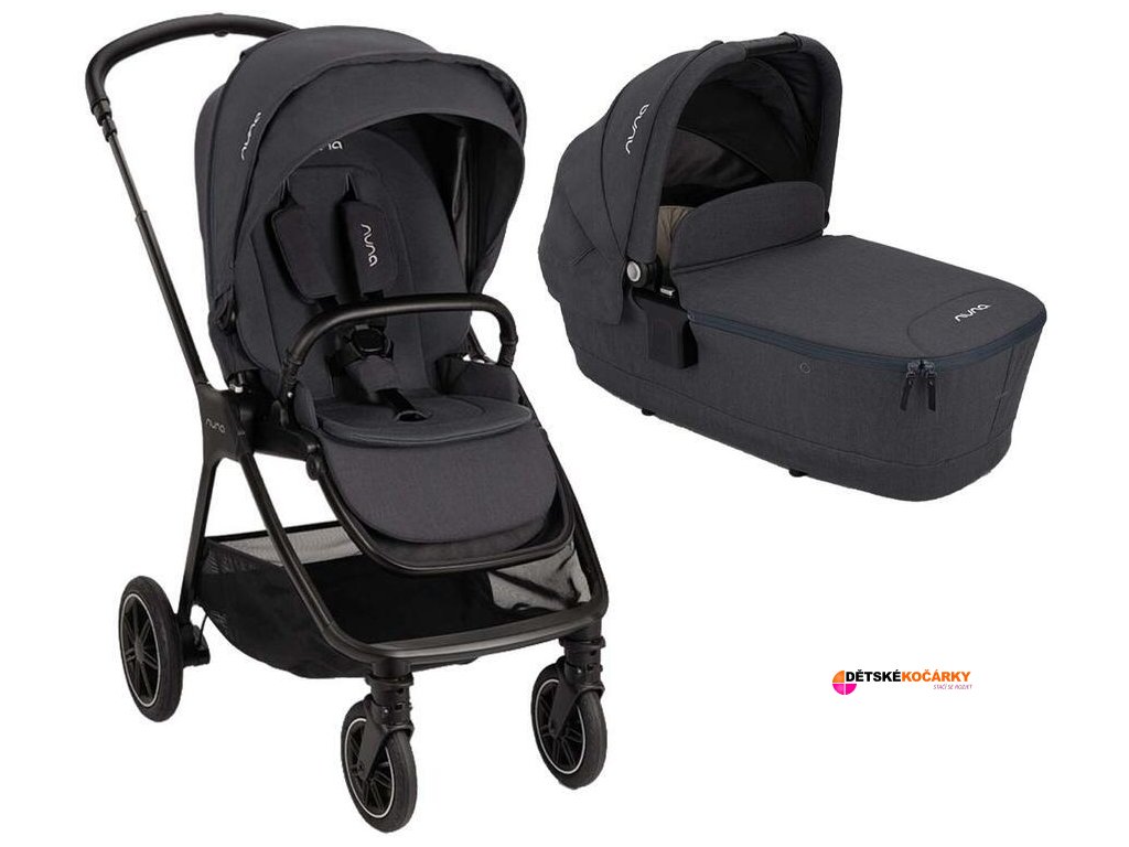 Set obsahuje: sportovní kočárek NUNA TRIV™ Next + Merino vložka + adaptéry pro autosedačku + bezpečnostní madlo + pláštěnku + hlubokou korbu NUNA LYTL™