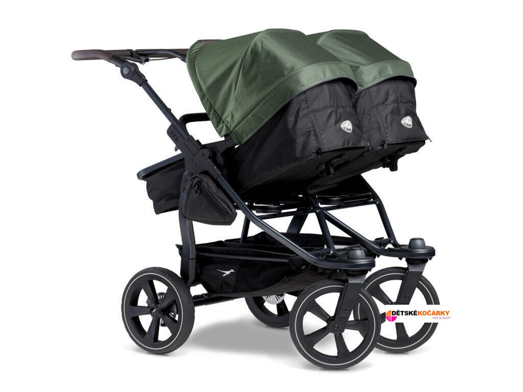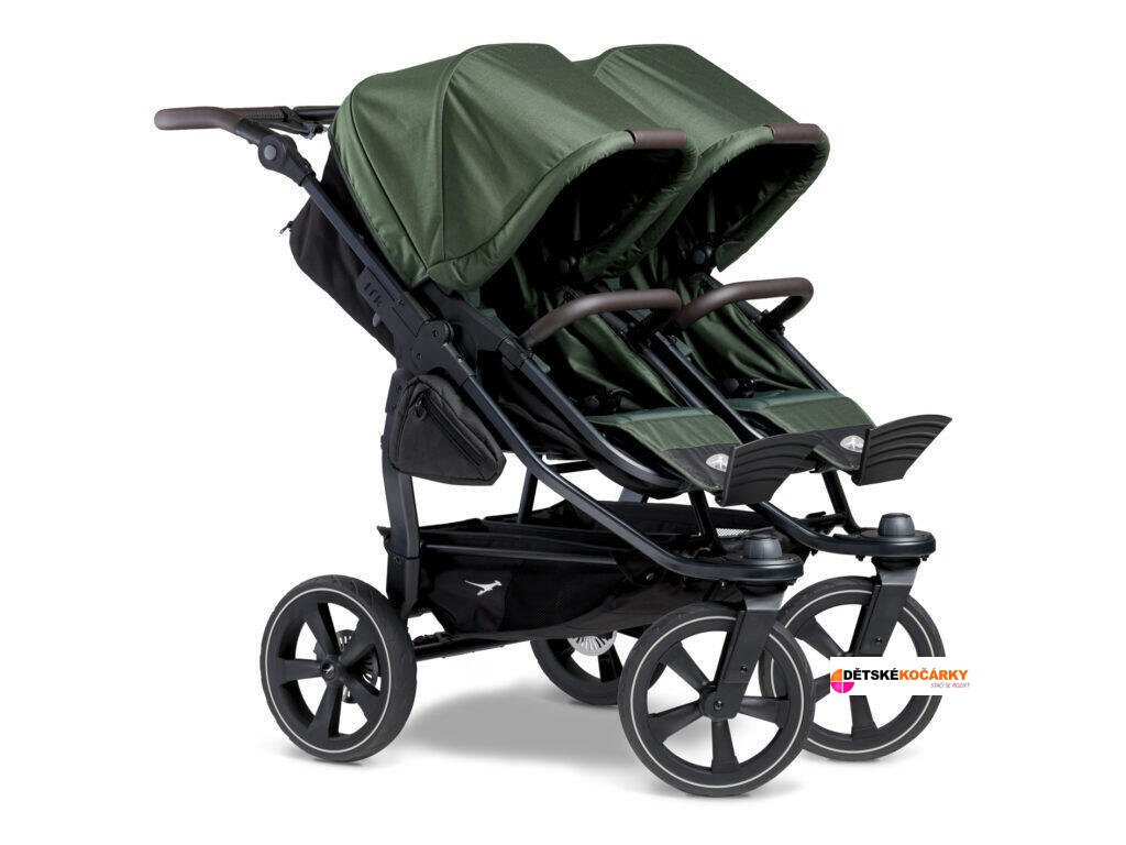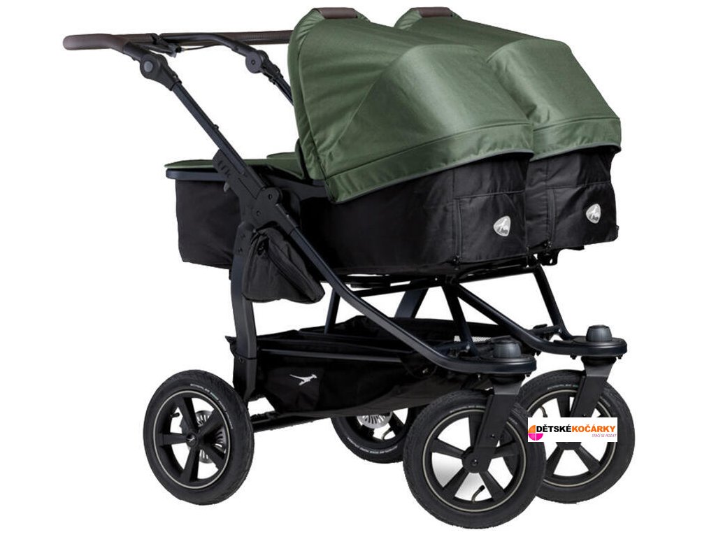 Set obsahuje: konstrukci kočárku TFK Duo2 frame Air Wheel s nafukovacími koly + 2x hlubokou korbu TFK Carrycot Duo2 Combi s možností přestavění na sportovní nástavbu + košík pod kočárek