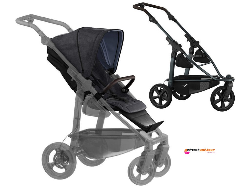 Set obsahuje: podvozek TFK Mono 3 frame air chamber wheel + sportovní sedačku TFK Stroller seat unit mono/pro Premium + stříšku + otočné madlo před dítě + opěrku nohou