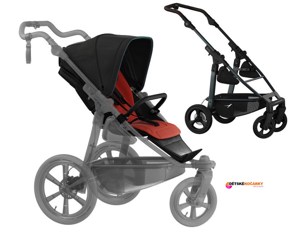Set obsahuje: podvozek TFK Mono 4 frame air chamber wheel + sportovní sedačku TFK Stroller seat unit mono/pro + stříšku + otočné madlo před dítě + opěrku nohou
