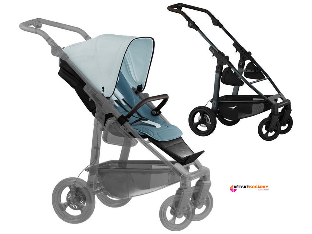 Set obsahuje: podvozek TFK Mono 4 frame air chamber wheel + sportovní sedačku TFK Stroller seat unit mono/pro + stříšku + otočné madlo před dítě + opěrku nohou