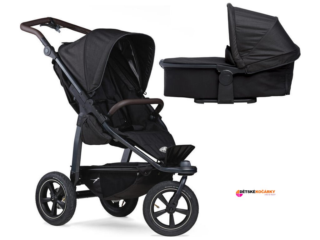 Set obsahuje: sportovní kočárek TFK Mono2 Air Wheel s nafukovacími koly + nastavitelné madlo + košík pod kočárek + hlubokou korbu TFK Carrycot Mono2 Combi Unit