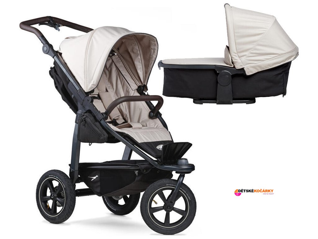 Set obsahuje: sportovní kočárek TFK Mono2 Air Wheel s nafukovacími koly + nastavitelné madlo + košík pod kočárek + hlubokou korbu TFK Carrycot Mono2 Combi Unit