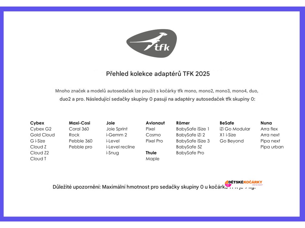 - pomocí adaptérů je možné na konstrukci nasadit autosedačku (adaptéry i autosedačku je nutné dokoupit)