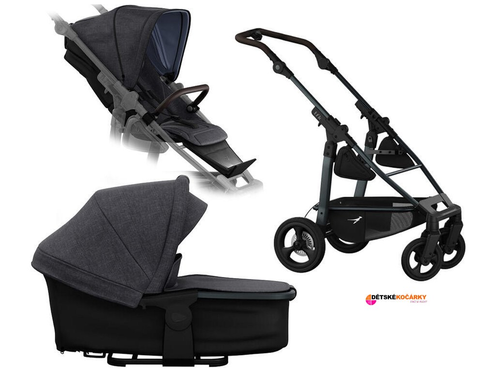 Set obsahuje: TFK Mono 4 frame air chamber wheel + hlubokou korbu TFK Carrycot Mono3, 4/Pro combi unit Premium + sportovní sedačku TFK Stroller seat unit mono/pro Premium