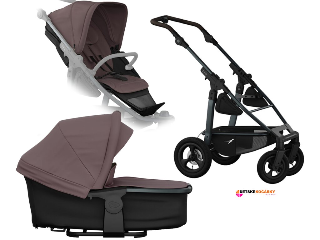 Set obsahuje: TFK Mono 4 frame air wheel + hlubokou korbu TFK Carrycot Mono3, 4/Pro combi unit + sportovní sedačku TFK Stroller seat unit mono/pro
