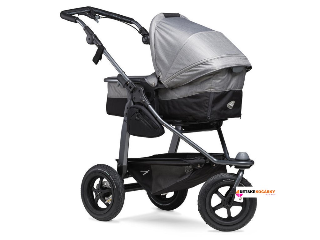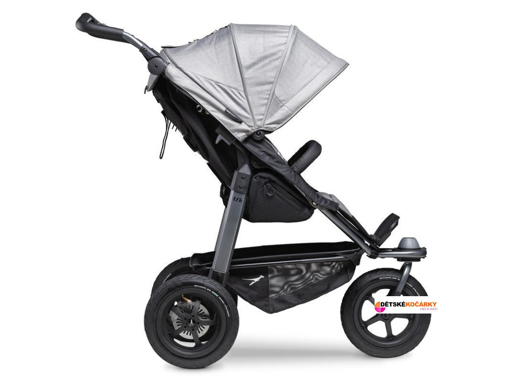 Set obsahuje: sportovní kočárek TFK Mono Air Wheel s nafukovacími koly + hlubokou korbu TFK Mono Combi + nastavitelné madlo + košík pod kočárek