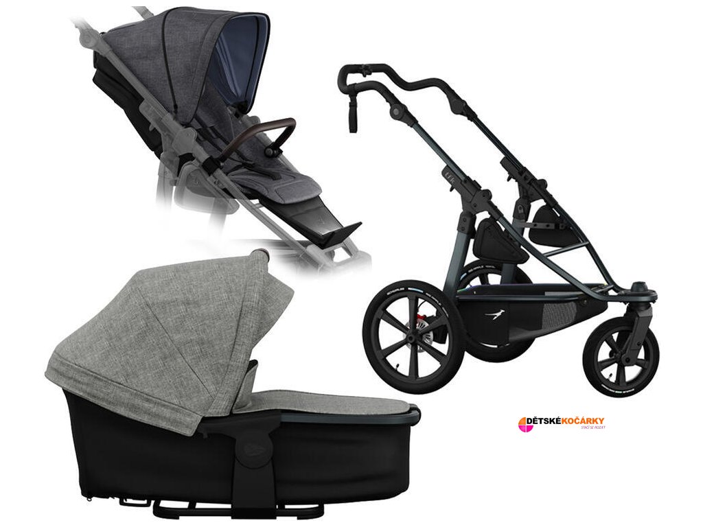 Set obsahuje: TFK proA frame + hlubokou korbu TFK Carrycot Mono3, 4/Pro combi unit + sportovní sedačku TFK Stroller seat unit mono/pro