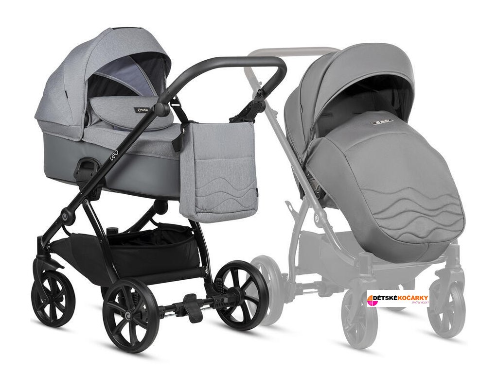 Set obsahuje: podvozek TUTIS Leo + hlubokou korbičku s matrací + sportovní sedačku + přebalovací tašku + nánožník pro korbičku i sportovní sedačku + pláštěnku + moskytiéru