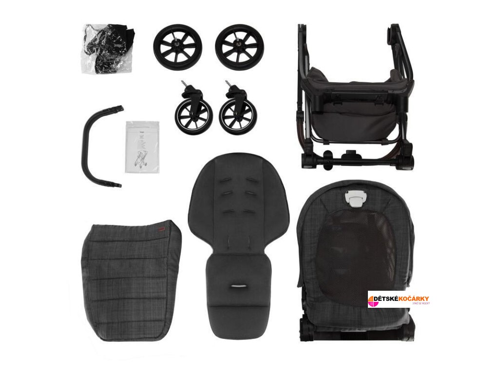 Set obsahuje: podvozek ZOPA Quest + otočné sportovní sezení + prostorný nákupní košík + pláštěnku + nánožník