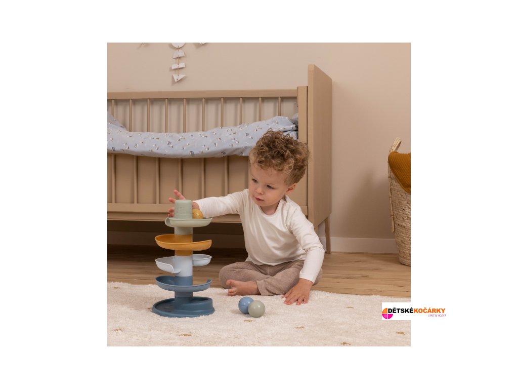 Sledujte s vaším dítětem, jak se míčky kutálí kolem dokola jeden za druhým! Kuličkovou dráhu LITTLE DUTCH v jemných pastelových barvách snadno sestavíte z pěti dílů a zábava může začít. Hračka pomáhá rozvíjet koordinaci ruka - oko dítěte a učí jej zábavným způsobem konceptu příčiny a následku.