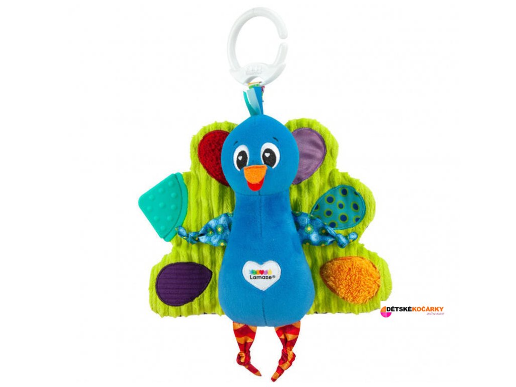 Páv Pavel od LAMAZE je vyroben z různě strukturovaných a barevných materiálů, které stimulují zrak, hmat a rozvíjí motoriku. Křídla při doteku šustí, kousátko ve tvaru trojuhelníku na křídlech uleví při prořezávání zoubků bolavým dásním, část hračky po stisknutí zapíská.