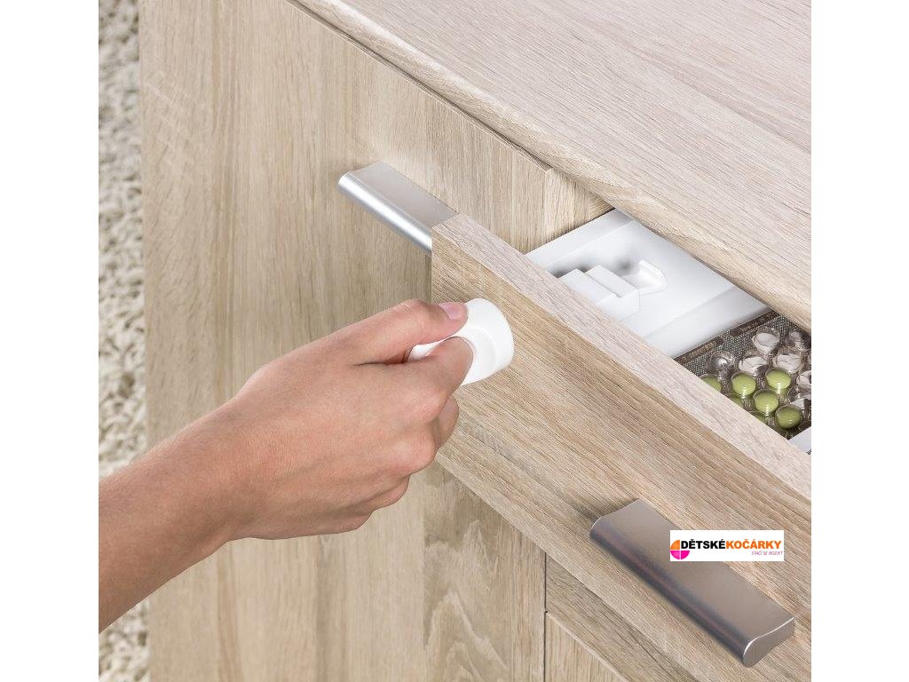 Magnetický zámek REER na dvířka spolehlivě uzamkne skříňky a zásuvky a chrání tak děti před případným nebezpečím. S tímto magnetickým zámkem zůstávají dvířka a zásuvky zcela zavřené a to dokud je neotevřete pomocí magnetického klíče. Tento zámek se vyznačuje snadnou a rychlou instalací bez nutnosti pracného měření, označování a nastavování jednotlivých částí. Obě části zámku stačí pouze spojit pomocí připevňovací svorky a připevnit k příslušnému nábytku. Na rozdíl od běžných zámků, u kterých je třeba nechat dvířka mírně pootevřená, s tímto magnetickým zámkem zůstávají dvířka a zásuvky zcela zavřené a to dokud je neotevřete pomocí magnetického klíče. Tento odemykací mechanismus umožňuje delší dobu používání i pro starší děti.