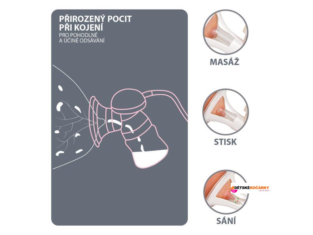 - odsávačka dokonale napodobuje přirozené sání dítěte