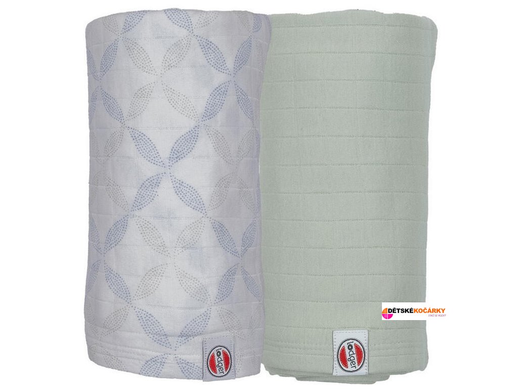 Multifunkční osuška LODGER Swaddler Solid 110x110 cm 2 ks 2024, matcha peppermint/blue