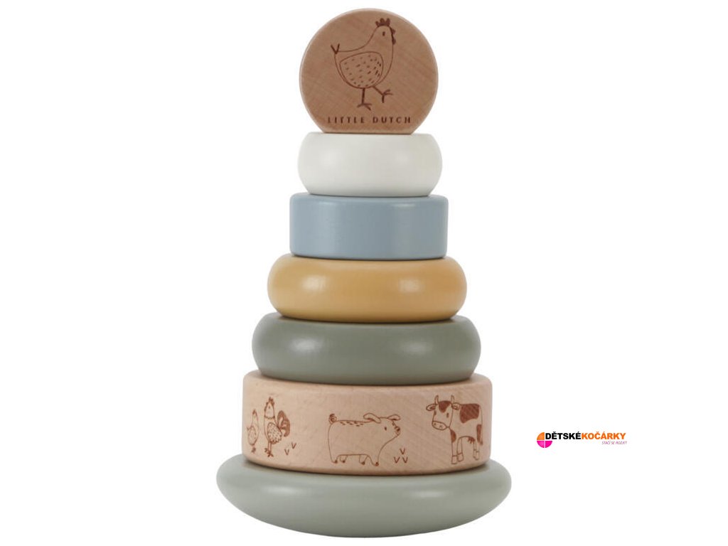 Nasazovací dřevěné kroužky LITTLE DUTCH Farma 2026