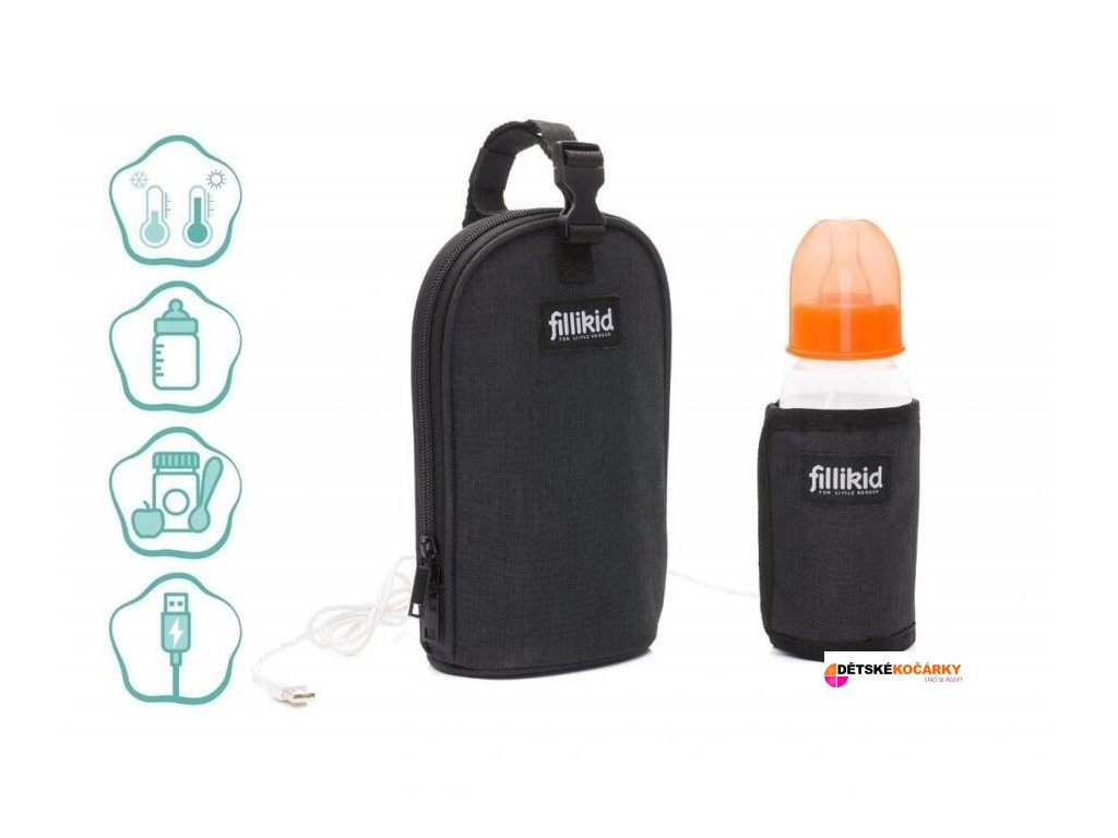 Ohřívací obal FILLIKID dokáže pomocí kabelu USB ohřát studené nápoje nebo kaši.
