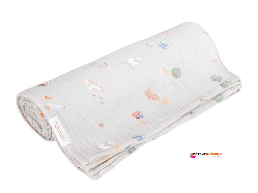 Osuška LITTLE DUTCH Mušelín 120x120 cm Farma 2024, farma