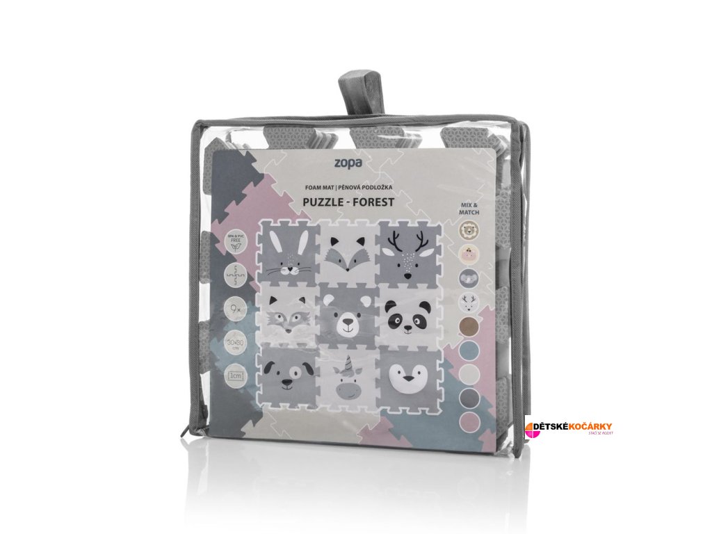 Pěnová podložka ZOPA Puzzle 30x30 cm 9ks je puzzle je vyrobené z kvalitní EVA pěny. Plní funkci nejen podložky, která zajistí pohodlí díky izolaci od chladu, ale zároveň praktické pomůcky pro první měsíce miminka, kdy poskytuje měkkou oporu při pasení koníčku nebo prvním lezení. Zároveň, když podložku nepoužíváte a je složená, nezabírá zbytečně moc místa. Podložka je balena v praktické přepravní tašce a lze ji snadno sbalit v případě, že ji nepoužíváte nebo pokud si ji potřebujete vzít kamkoliv s sebou.