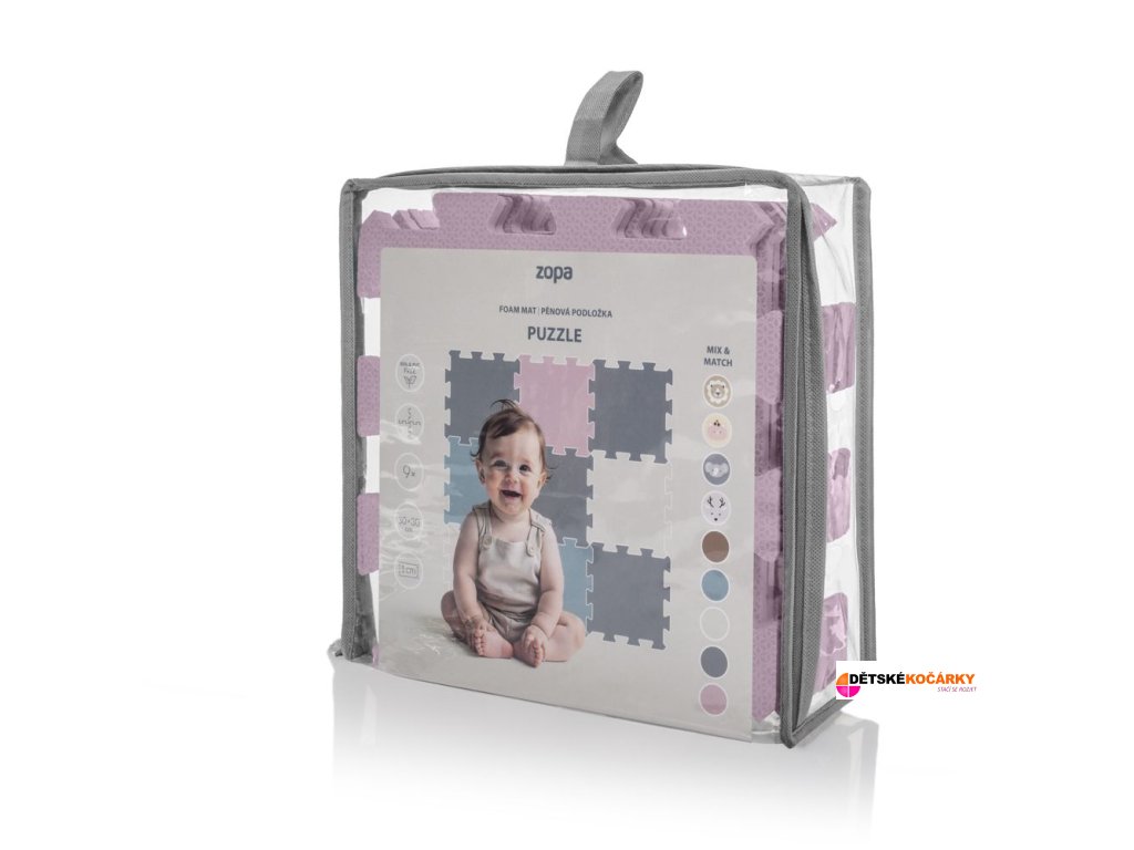 Pěnová podložka ZOPA Puzzle 30x30 cm 9ks je puzzle je vyrobené z kvalitní EVA pěny. Plní funkci nejen podložky, která zajistí pohodlí díky izolaci od chladu, ale zároveň praktické pomůcky pro první měsíce miminka, kdy poskytuje měkkou oporu při pasení koníčku nebo prvním lezení. Zároveň, když podložku nepoužíváte a je složená, nezabírá zbytečně moc místa. Podložka je balena v praktické přepravní tašce a lze ji snadno sbalit v případě, že ji nepoužíváte nebo pokud si ji potřebujete vzít kamkoliv s sebou.
