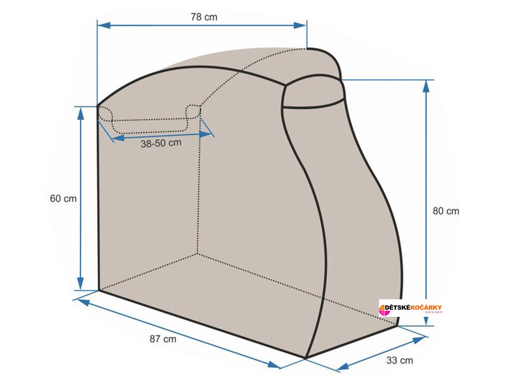 Rozměry pláštěnky jsou pouze orientační, je nutné brát v úvahu, že pláštěnka má volný střih a nekopíruje přesně rozměry kočárku.