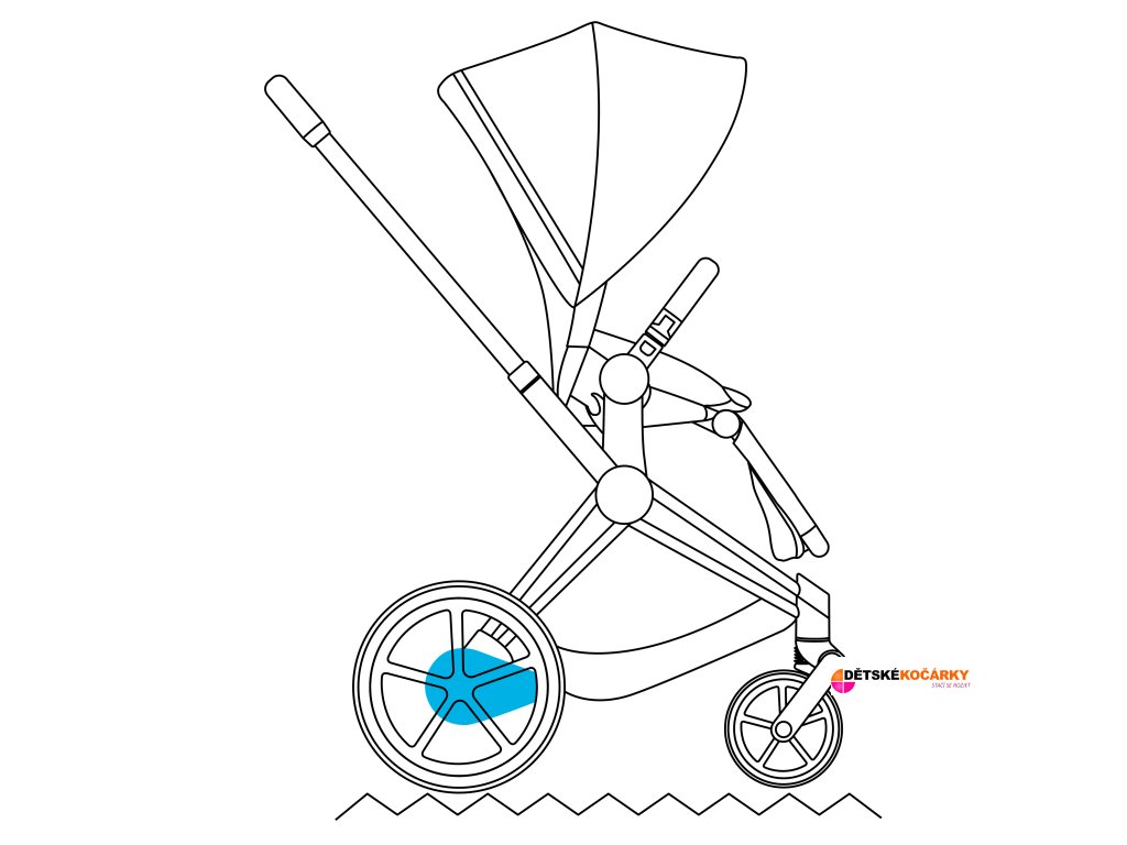 - nové odpružení všech kol kočárku PRIAM zajišťuje hladkou, klidnou a pohodlnou jízdu pro rodiče i dítě