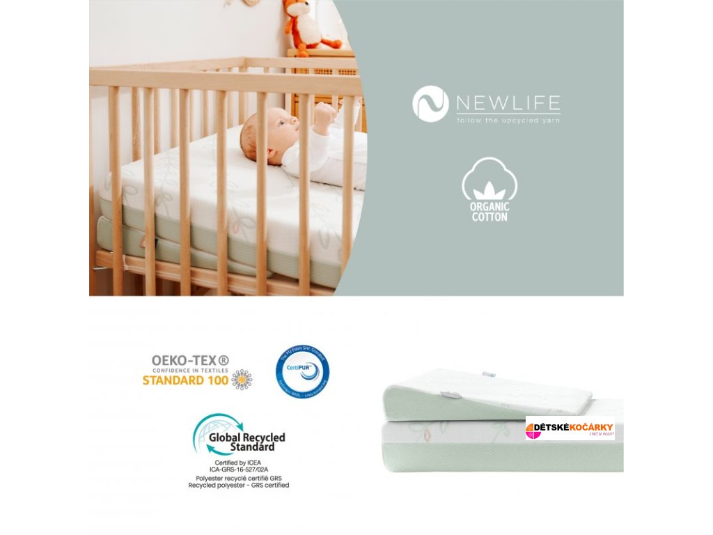 - potah z organické bavlny a 100% recyklovaných polyesterových vláken Newlife Healthcare® s certifikací GRS (Global Recycled Standard)