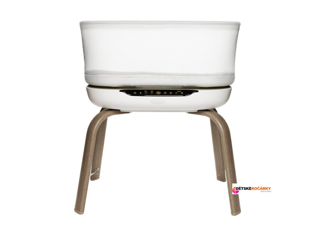 Dětská postýlka GRACO Eluma™ Nest je převratně chytrá postýlka, nabitá funkcemi včetně unikátní technologie Cry Detection Technology, která sama rozpozná pláč dítěte a okamžitě spustí uklidňující funkce pro rychlejší návrat ke spánku.