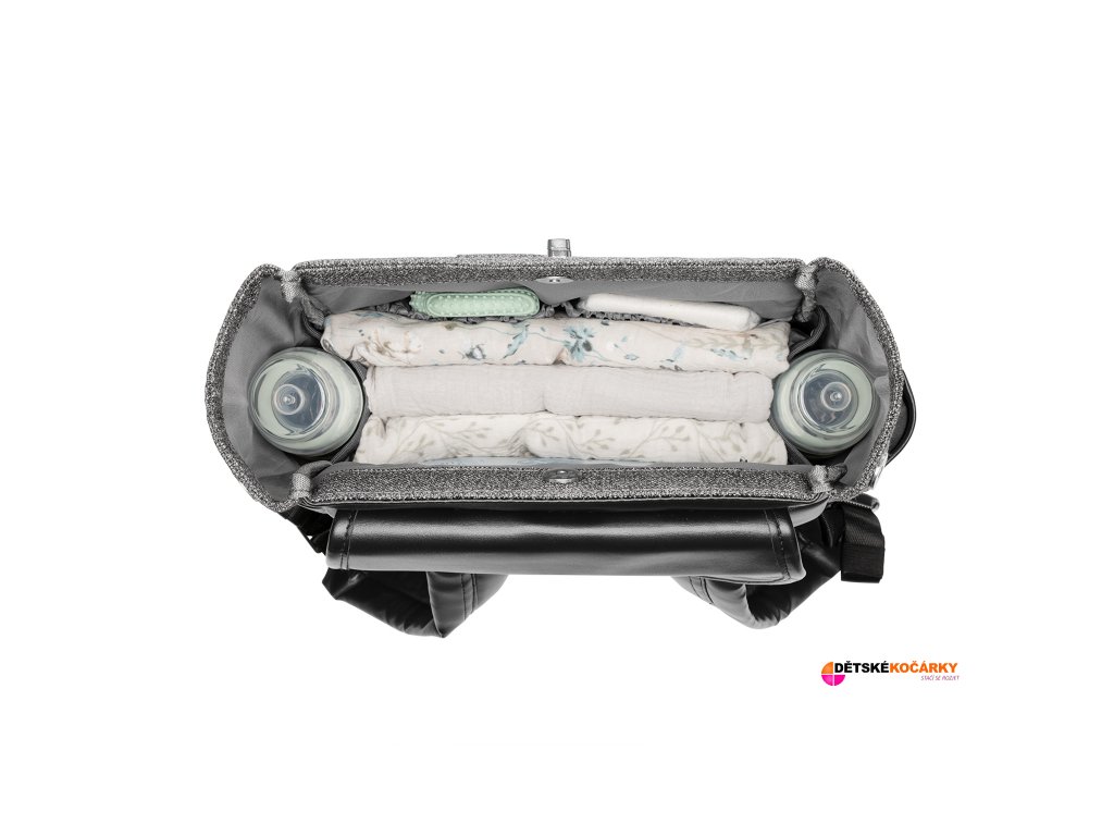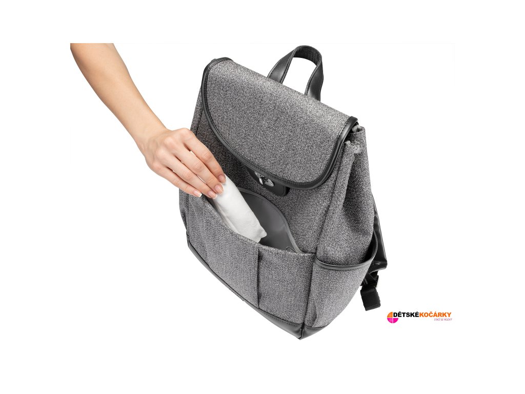 Uvnitř batohu najdete množství kapes a přihrádek i voděodolnou kapsu pro uložení vlhkých předmětů. Široký způsob otevírání batohu usnadňuje orientaci v uloženém obsahu. Na vnější straně najdete kapsy s uzavíráním na zip i kapsu pro uložení láhve. Termoizolační kapsy na láhve pomáhají udržet nápoje či mléko delší dobu v optimální teplotě. Součástí batohu je i přebalovací podložka.