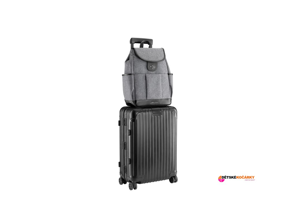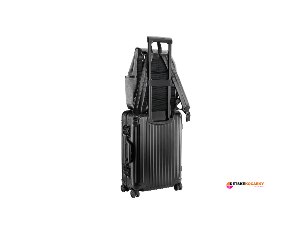 - batoh je možné zavěsit na kočárek, připevnit k rukojeti kufru, nosit na zádech i v ruce