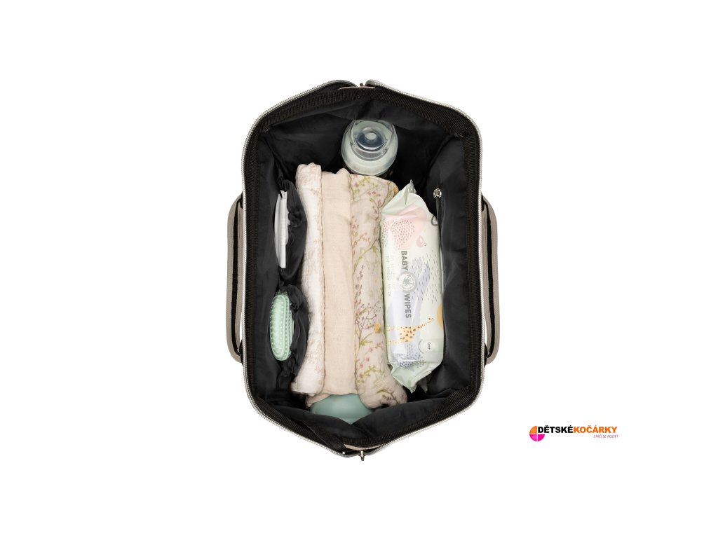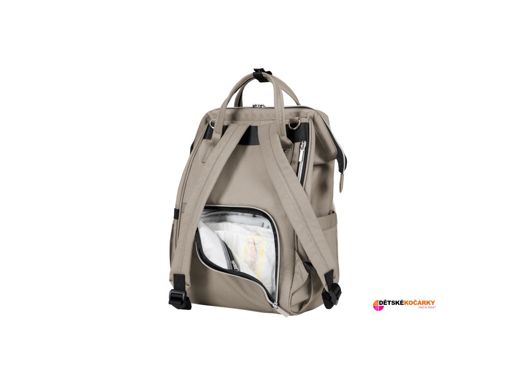 - batoh je možné zavěsit na kočárek, nosit na zádech i v ruce