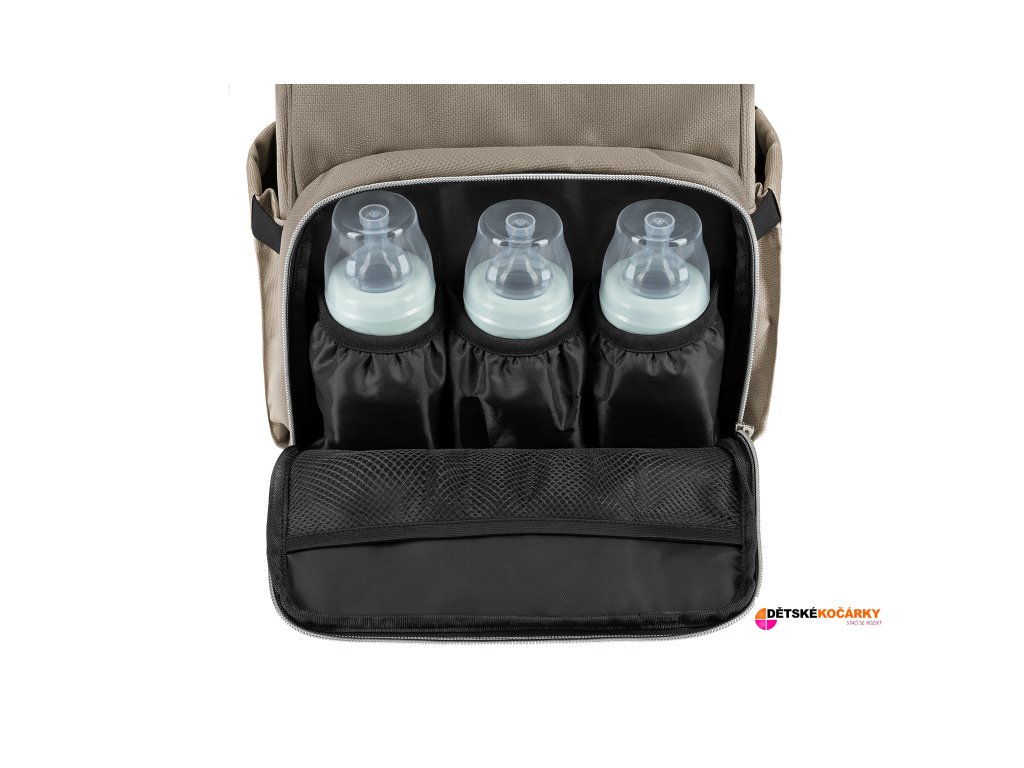 Stylový přebalovací batoh KIKKABOO Siena umožňuje přehledné uložení všeho potřebného na procházky a výlety s vaším dítětem. Klipy umožňují zavěšení na madla kočárku. Uvnitř batohu najdete množství kapes a přihrádek i voděodolnou kapsu pro uložení vlhkých předmětů. Široký způsob otevírání batohu usnadňuje orientaci v uloženém obsahu. Na vnější straně najdete kapsy s uzavíráním na zip i kapsu pro uložení láhve. Termoizolační kapsy na láhve pomáhají udržet nápoje či mléko delší dobu v optimální teplotě. Součástí batohu je i přebalovací podložka.