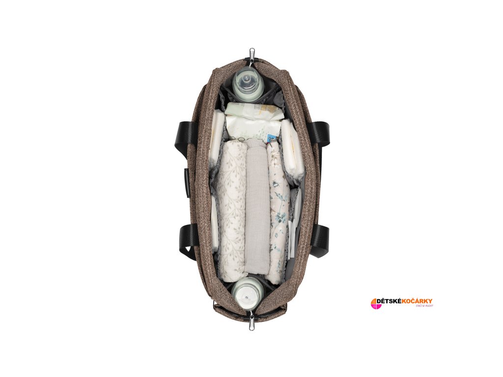 Stylová přebalovací taška KIKKABOO Chelsea umožňuje přehledné uložení všeho potřebného na procházky a výlety s vaším dítětem. Klipy umožňují zavěšení na madla kočárku. Uvnitř tašky najdete přebalovací podložku, množství kapes a přihrádek, voděodolnou kapsu pro uložení vlhkých předmětů a dvě termoizolační kapsy pro láhve. Na vnější straně najdete kapsu na zip i prostor pro uložení láhve. Držadla z měkké umělé kůže umožňují pohodlné nošení v ruce, součástí tašky je i ramenní popruh pro nošení přes rameno.