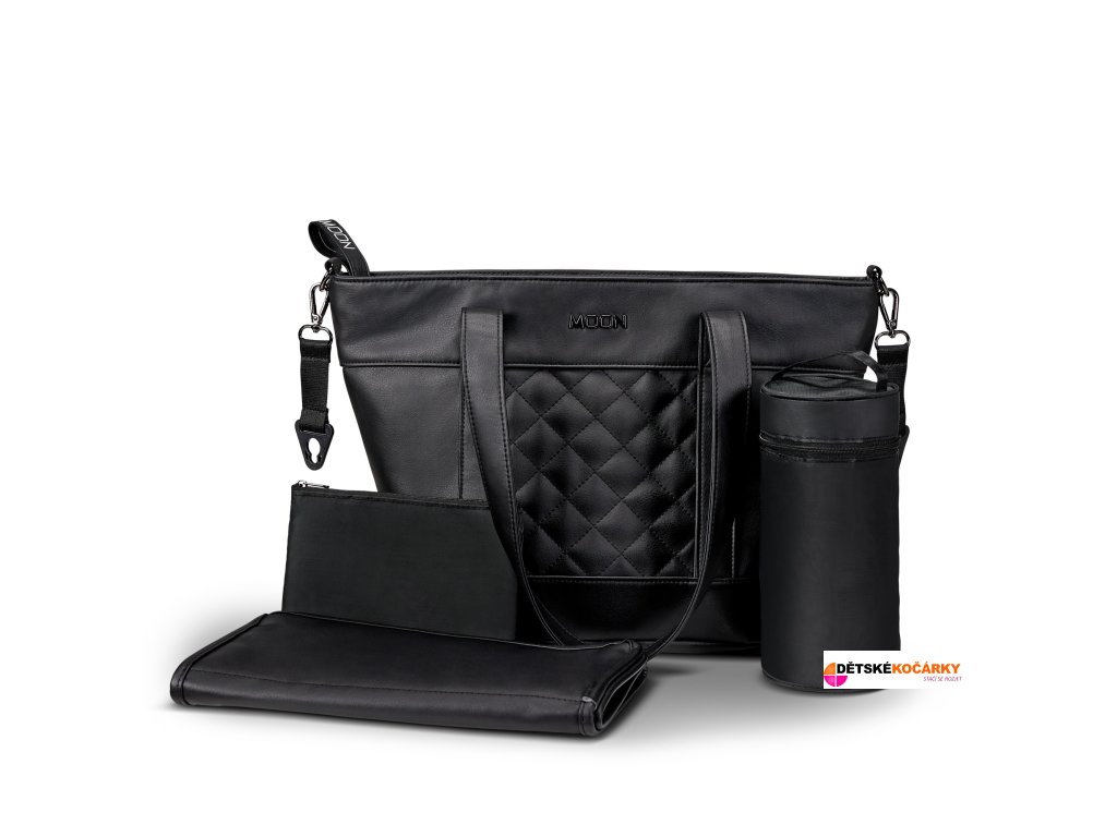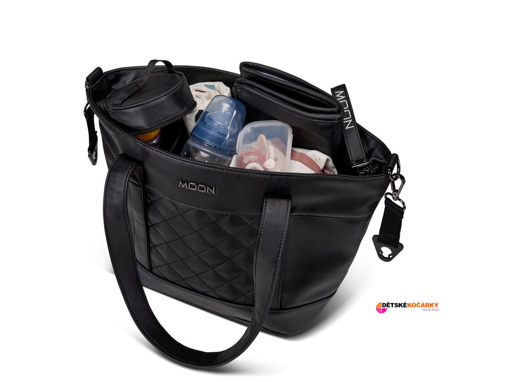 Stylová, praktická a moderní přebalovací taška MOON v elegantním designu nabízí možnost uložení všech věcí, které potřebujete na cesty s dítětem v kočárku.