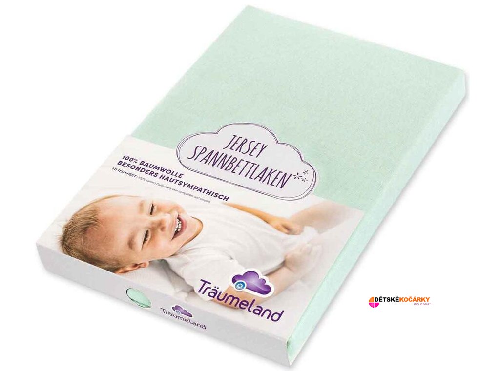Prostěradlo TRÄUMELAND Jersey Uni je napínací, měkké prostěradlo, které má vynikající napínací sílu a roztažnost a je vhodná pro matrace o velikosti 40x90 cm.