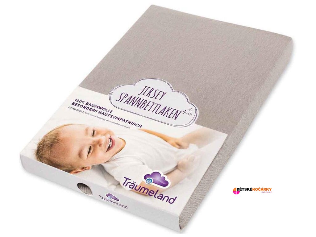 Prostěradlo TRÄUMELAND Jersey Uni je napínací, měkké prostěradlo, které má vynikající napínací sílu a roztažnost a je vhodná pro matrace o velikosti 60x120 až 70x140cm.