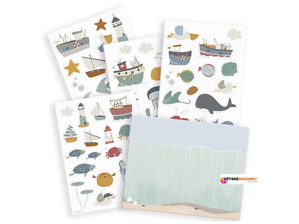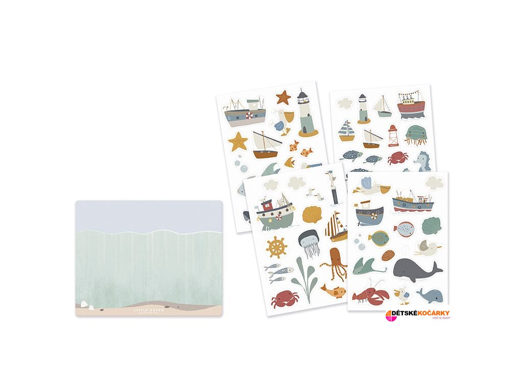 Snímatelné samolepky v podobě lodí, ryb, mořských ptáků a dalších motivů z kolekce LITTLE DUTCH Námořnický záliv jsou určené pro použití na okně, zrcadle či na přiložené papírové čtvrtce s natištěným pozadím s mořským dnem. Samolepky lze snadno odlepit a použít opakovaně.