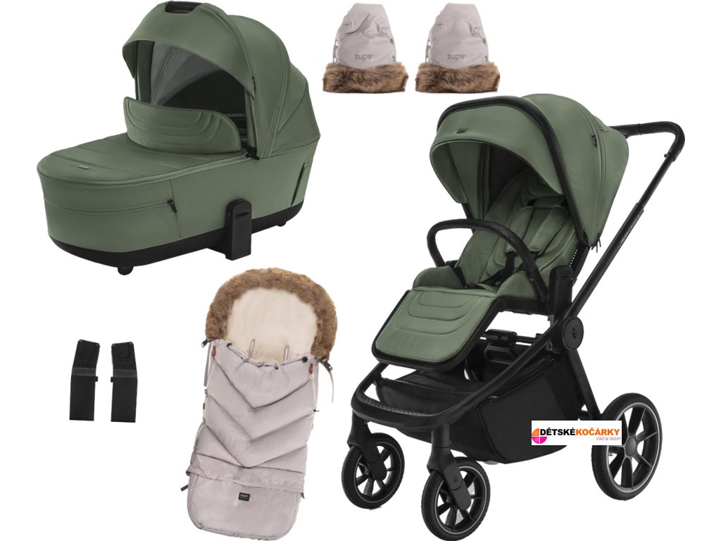 Set ZOPA Move Cross 5 + hluboká korba Move XL 5 + DÁRKY 2025, rocky green + Zimní rukavice Fluffy 2 + Zimní fusak Fluffy Combi + Adaptéry na autosedačku