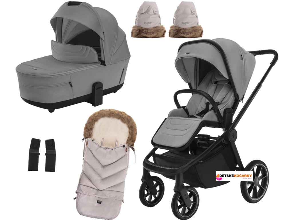 Set ZOPA Move Cross 5 + hluboká korba Move XL 5 + DÁRKY 2025, shade grey + Zimní rukavice Fluffy 2 + Zimní fusak Fluffy Combi + Adaptéry na autosedačku