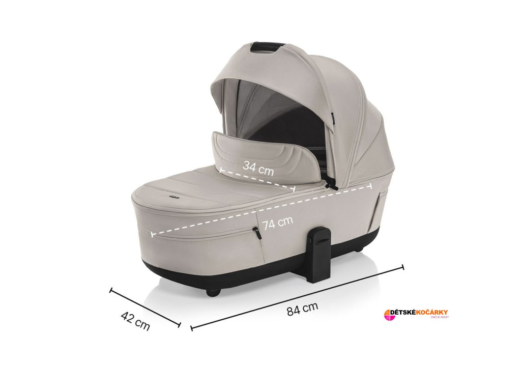 Pohodlí dítěte zajišťuje měkká kvalitní matrace a prodloužitelná stříška s větruodolnou clonou. Korba je ideální do jakéhokoli počasí – ventilační okénka na stříšce, v přední i zadní části a dokonce i na spodní straně korby zajišťují vynikající cirkulaci vzduchu během horkých dnů. Naopak v chladnějším období dítě ochrání hluboký nánožník s protivětrnou clonou.