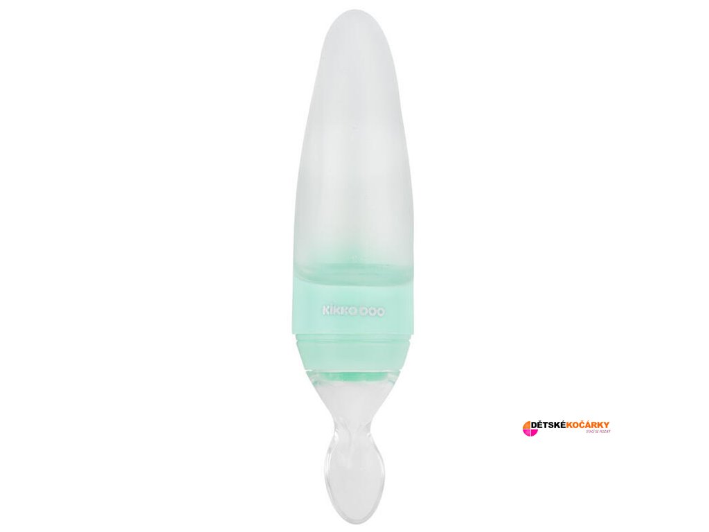 Měkká silikonová lahvička KIKKABOO na tekuté dětské příkrmy je zakončena silikonovou lžičkou. Umožňuje snadné a hygienicky čisté krmení dítěte doma i na cestách. Nasazovací kryt chrání lžičku před znečištěním.