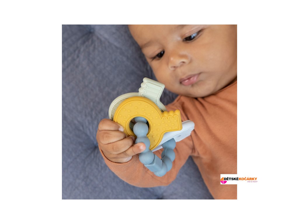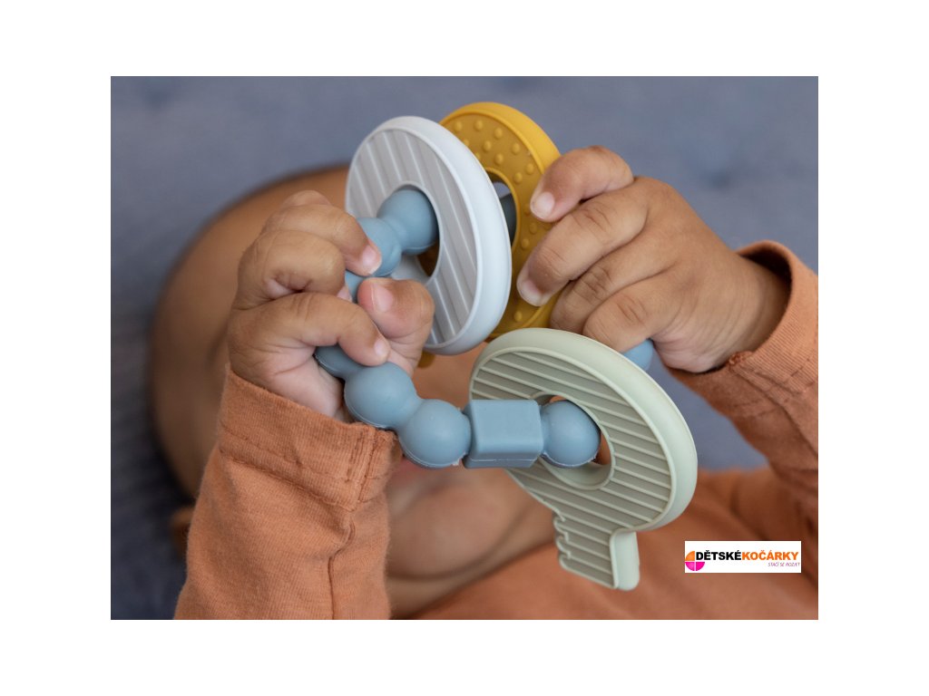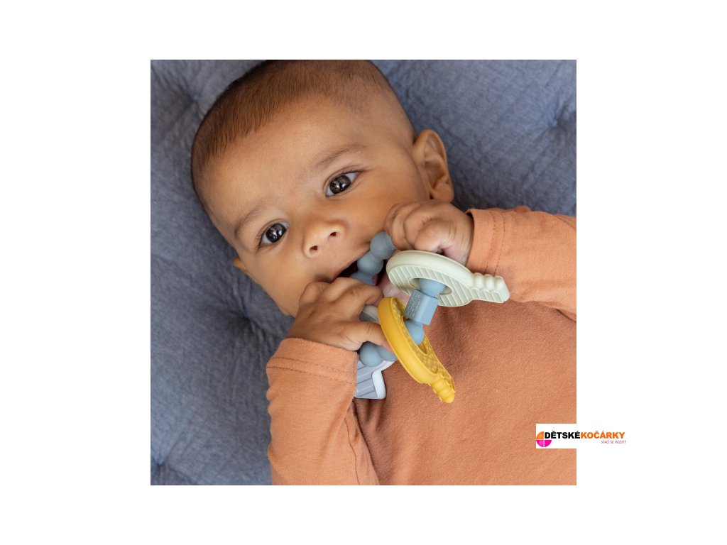 Měkké silikonové kousátko LITTLE DUTCH s různými texturami láká dítě ke zkoumání v ústech a pomáhá tak při prořezávání prvních zoubků. Kousátko v podobě klíčů na kroužku má tvar pro snadné uchopení dětskými ručičkami.
