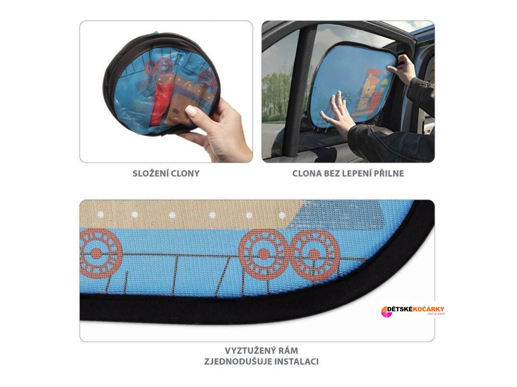Ostré sluneční paprsky umí jízdu v autě pěkně znepříjemnit. Sluneční clona do auta ZOPA s ochranou UPF 30+ jim věak dokáže úspěšně zabránit. Navíc, spolu se clonou děti získají i zábavného společníka na cesty v podobě zvířátek, která tuto ochrannou pomůcku zdobí.