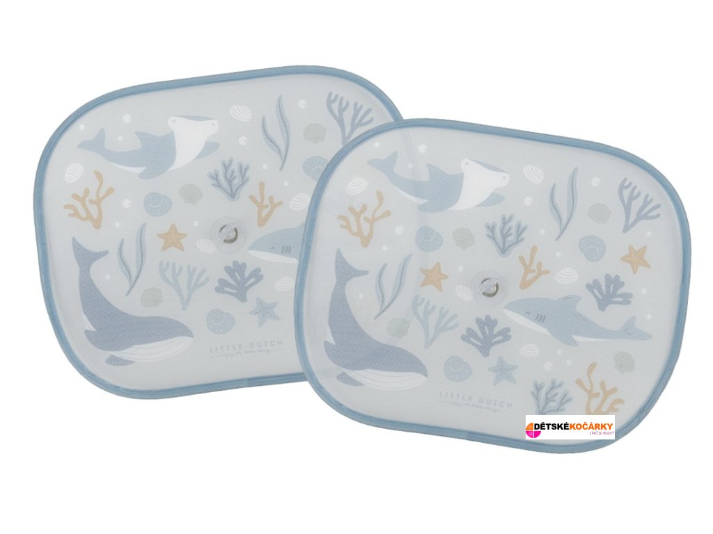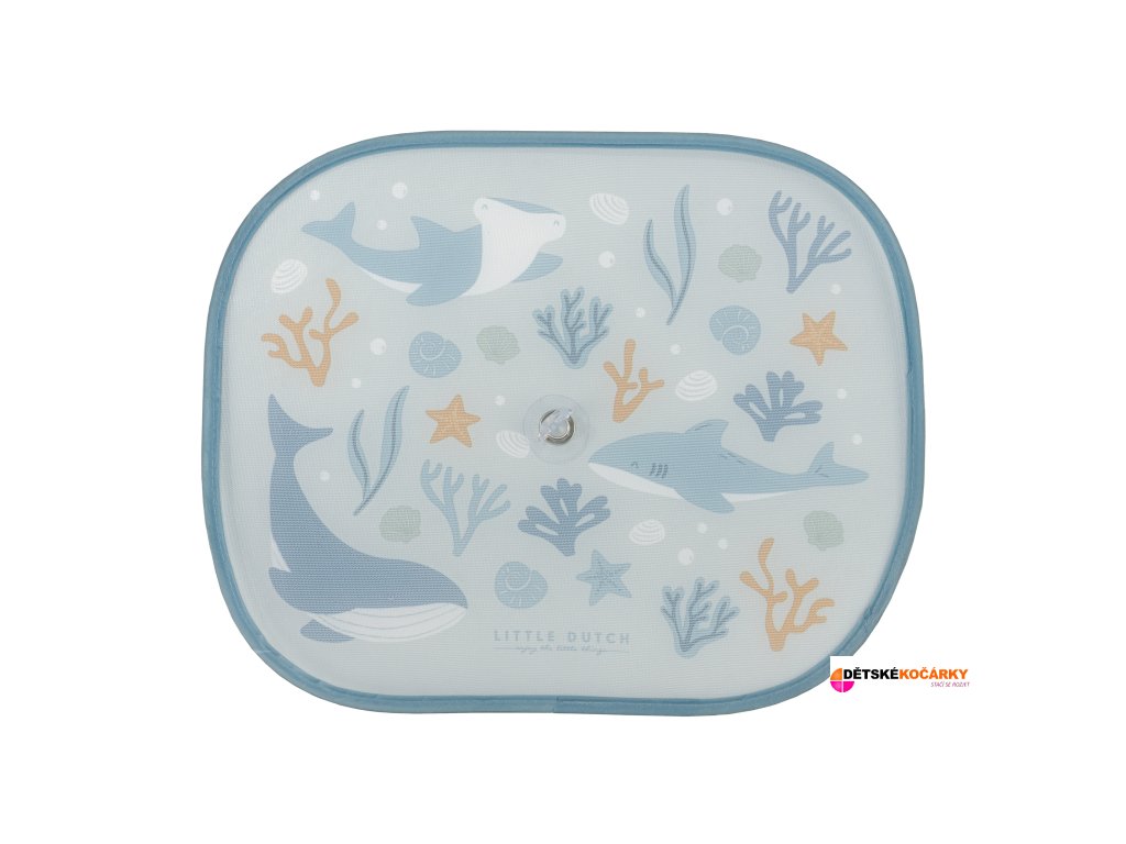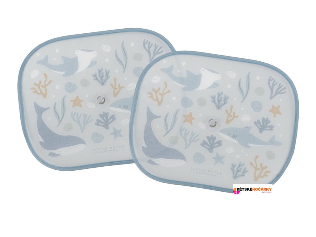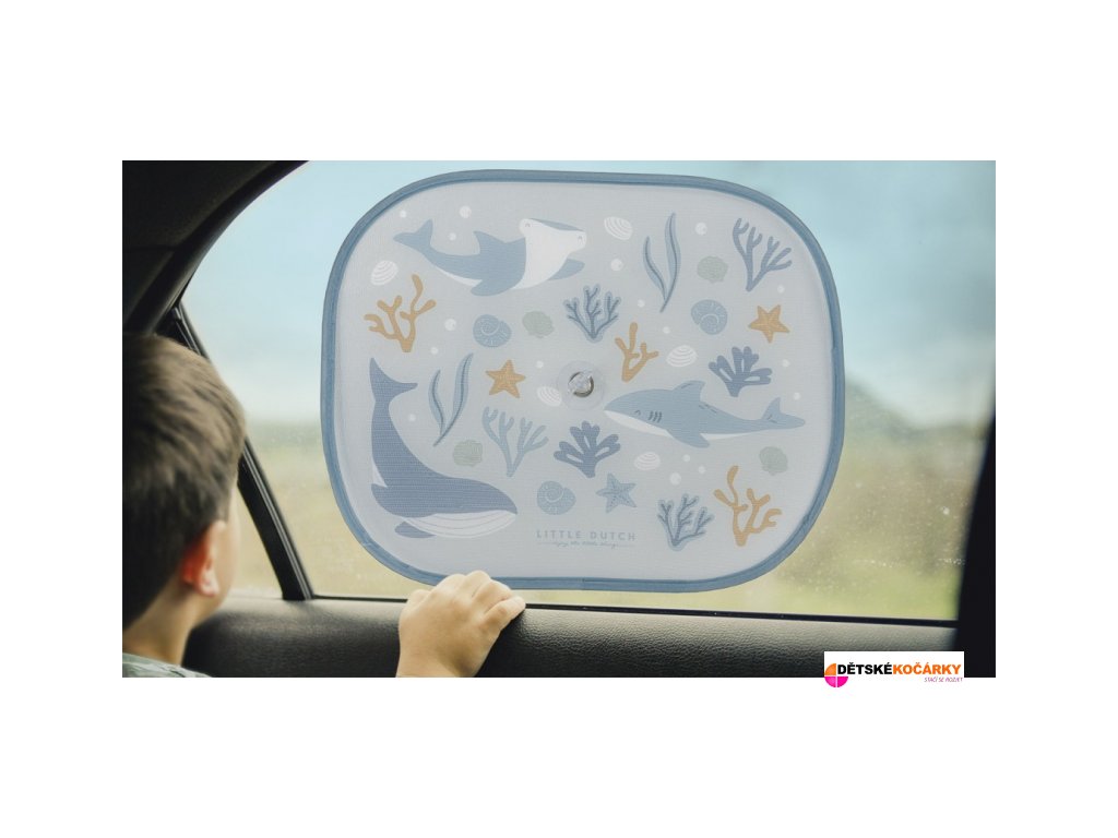 Sluneční clony LITTLE DUTCH Ocean Dreams pomáhají chránit vaše dítě před přímým slunečním zářením při cestování autem. Zastínění okna clonou pomáhá snížit množství UV záření pronikajícího do vozu a zároveň redukuje riziko přehřátí dítěte v autosedačce. Clony snadno připevníte na boční okno auta s pomocí přísavky.