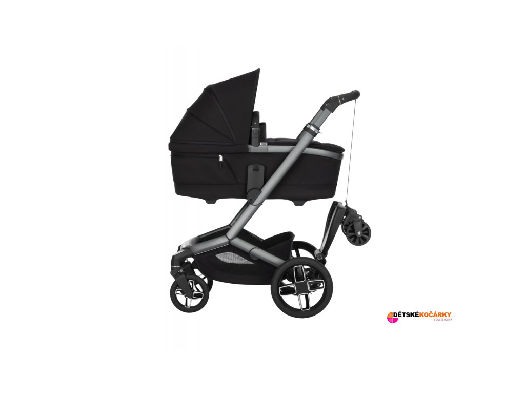 - když stupátko nepoužíváte, sklopíte jej nahoru a uchytíte přiloženým popruhem k rukojeti kočárku